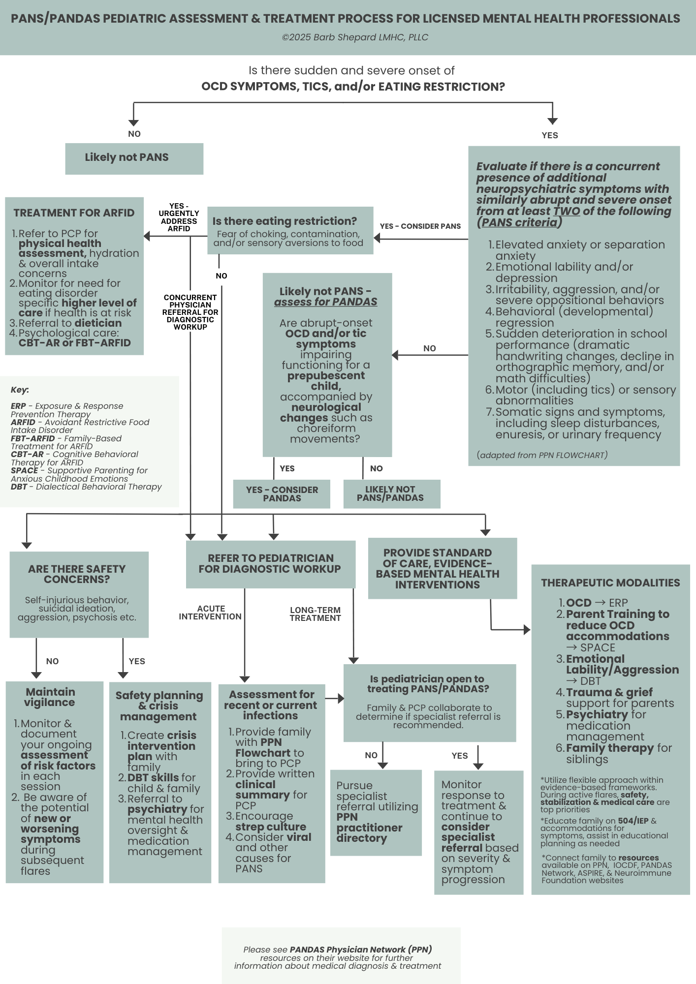 Not every case will be PANS/PANDAS, and when it isn’t, I will support clients with appropriate, evidence-based care for OCD, anxiety, or other symptoms using established standards of mental health practice.